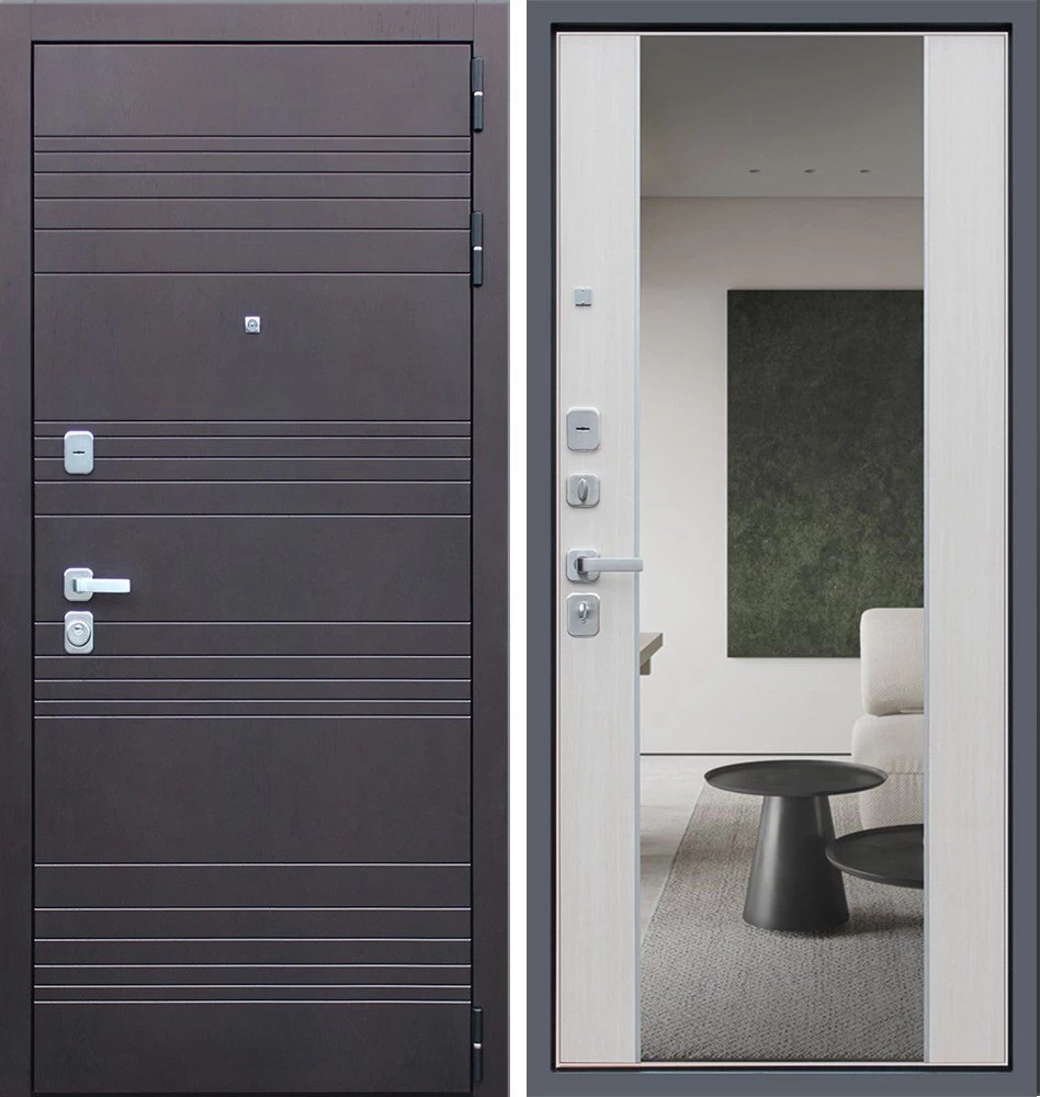 Надежная входная Дверь Дуэт с зеркалом премиум класса по цене 47 009 руб. Большая толщина стали защитит от проникновения в ваш дом, квартиру или коттедж. Используется очень качественная фурнитура: замки, цилиндры, ручки, защелки. Покрытие и отделка двери изготовлено под внимательным контролем производителя. Дверь имеет долгий срок службы и гарантию.