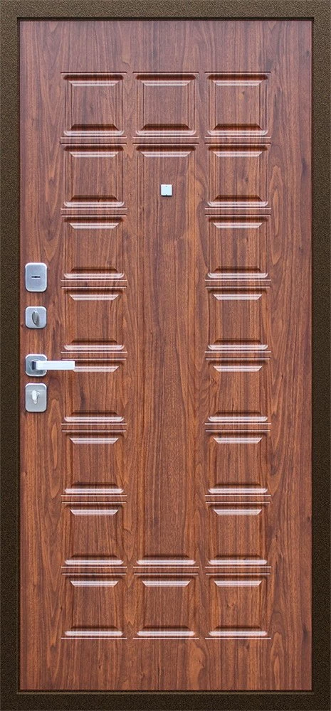 Надежная входная Дверь Спартак Орех темный премиум класса по цене 33 959 руб. Большая толщина стали защитит от проникновения в ваш дом, квартиру или коттедж. Используется очень качественная фурнитура: замки, цилиндры, ручки, защелки. Покрытие и отделка двери изготовлено под внимательным контролем производителя. Дверь имеет долгий срок службы и гарантию.