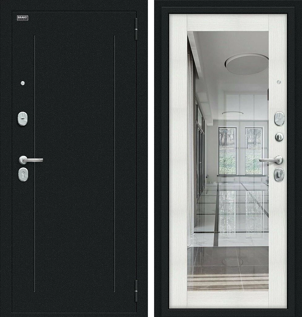 Надежная входная Входная дверь Флэш Букле черное/Bianco Veralinga BR4237 премиум класса по цене 33 241 руб. Большая толщина стали защитит от проникновения в ваш дом, квартиру или коттедж. Используется очень качественная фурнитура: замки, цилиндры, ручки, защелки. Покрытие и отделка двери изготовлено под внимательным контролем производителя. Дверь имеет долгий срок службы и гарантию.